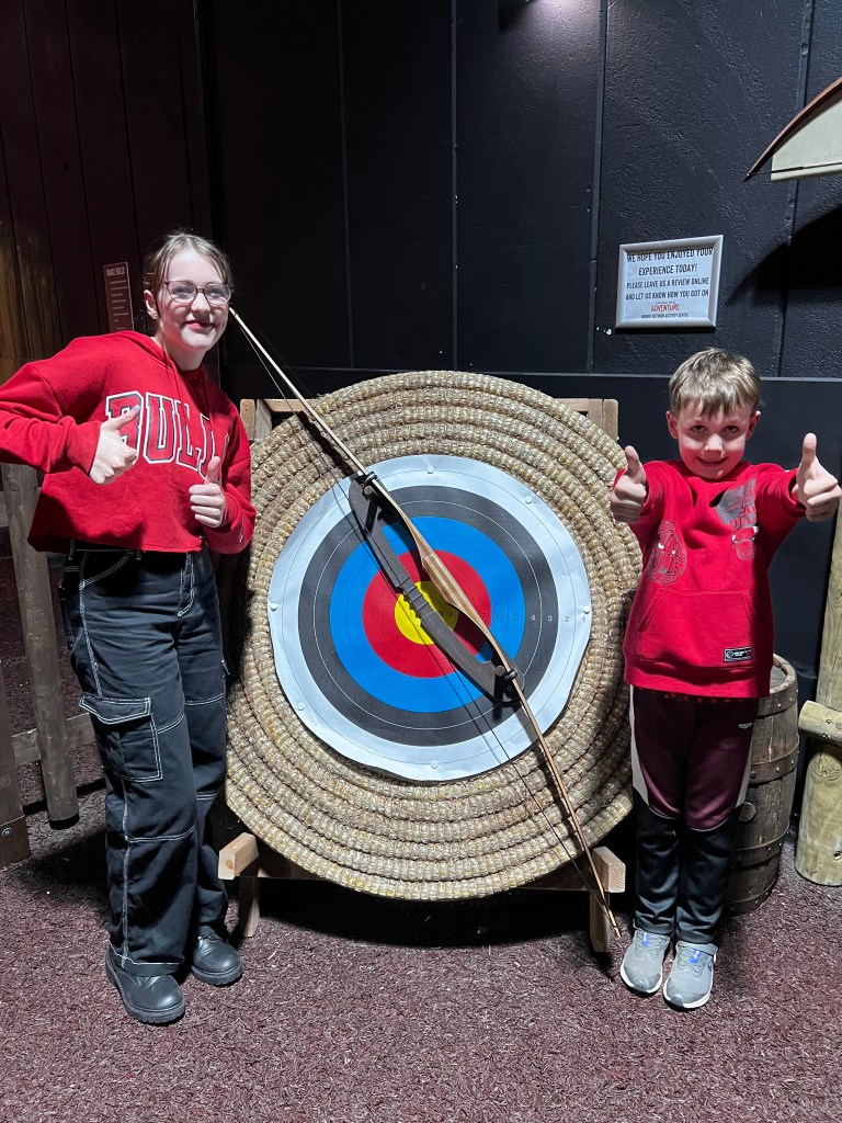 Around here Rich and the kiddos have been having a Day of Fun including bowling, Five Guys, shopping, arcades then the Bear Grylls Adventure with archery lessons and an assault course. They are all exhausted!